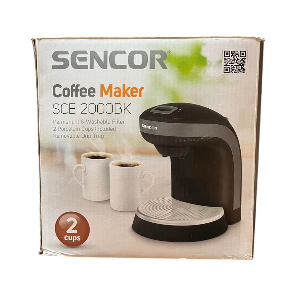 Kompakti ja tyylikäs kahden kupin Sencor SCE 2000BK -kahvinkeitin on täydellinen mökille, veneeseen, asuntovaunuun tai pieneen keittiöön!