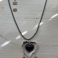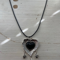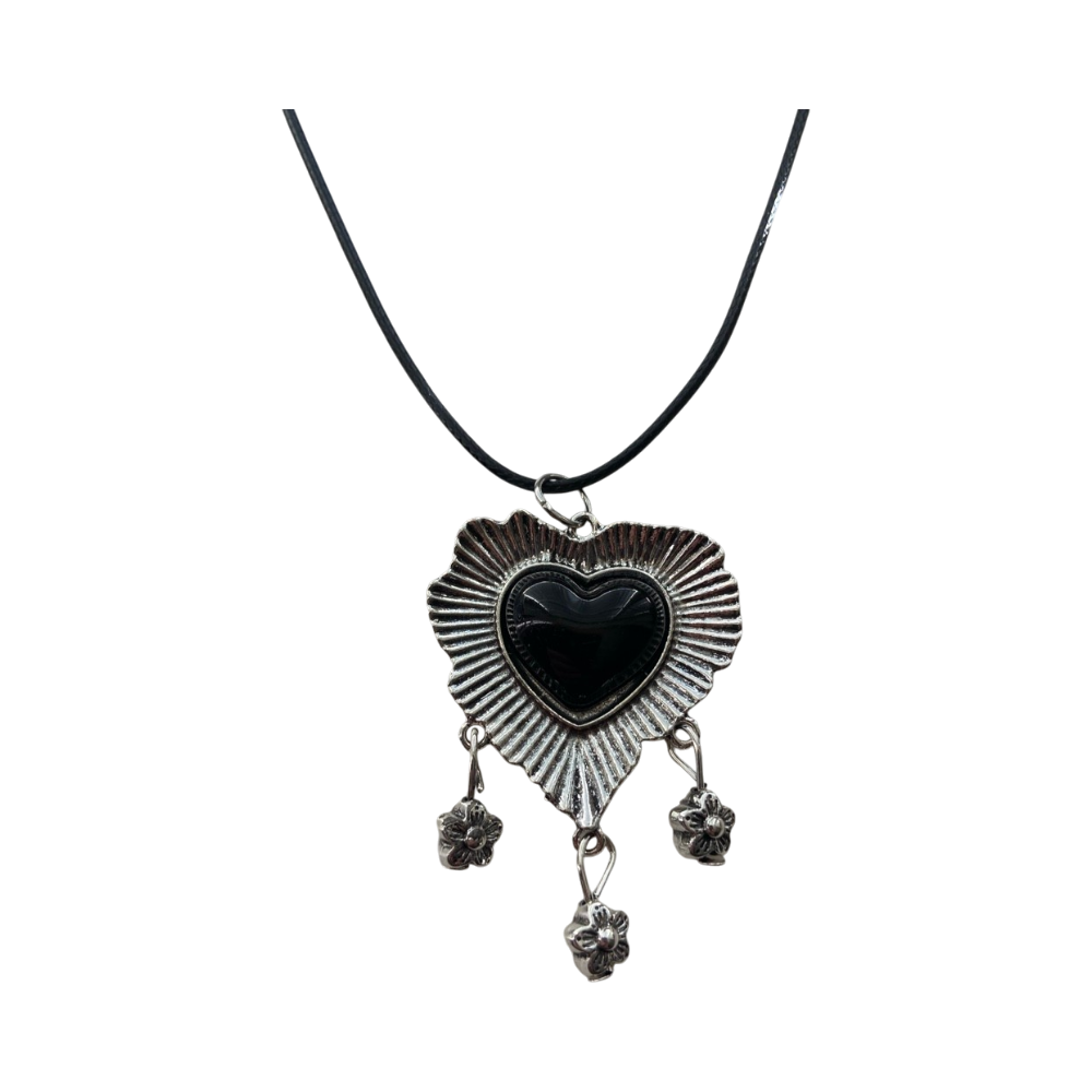 Koristeellinen sydänkaulakoru josta roikkuu pieniä kukkia