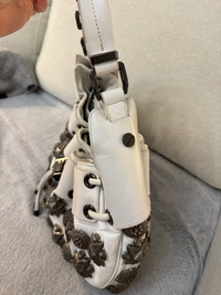 🕰️ Kerää harvinaisuus muodin keräilijöille! Laukussa on hyvin lieviä ajan tuomia merkkejä, jotka korostavat sen vintage-luonnetta. Ammattitaitoisella kemallisella puhdistuksella laukku voidaan palauttaa loistavaan kuntoon. Nahassa tai kankaassa ei ole vaurioita.