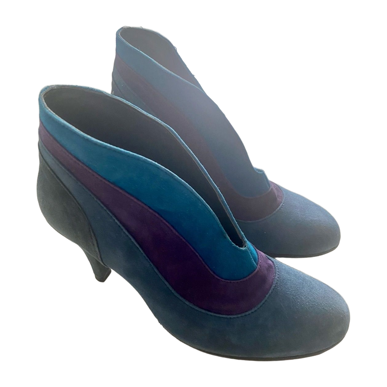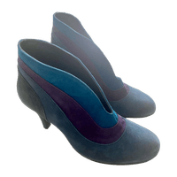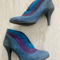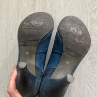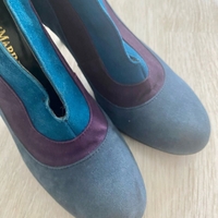 Pariisista ostetut mokkapintaiset korkokengät. Toisessa kärjessä hieman kulumaa ja pohjien urissa likaa.