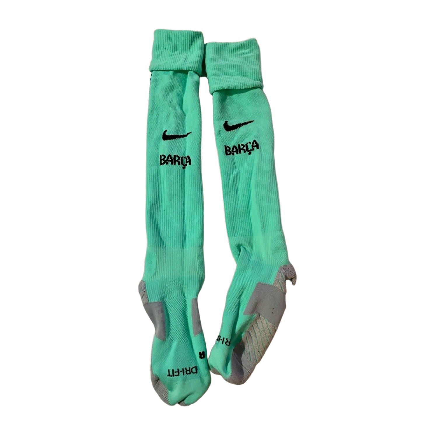 Barcelonan jalkapallojoukkueen pelisukat. Ostettu Barcelonan lentokentältä. Vain muutaman kerran käytetyt, vaikka sukan pohjassa pientä tummentumaa (kuvat kuvat). Koko M (37-39).