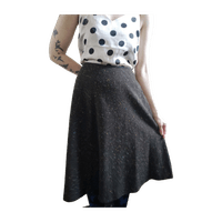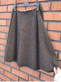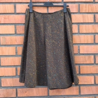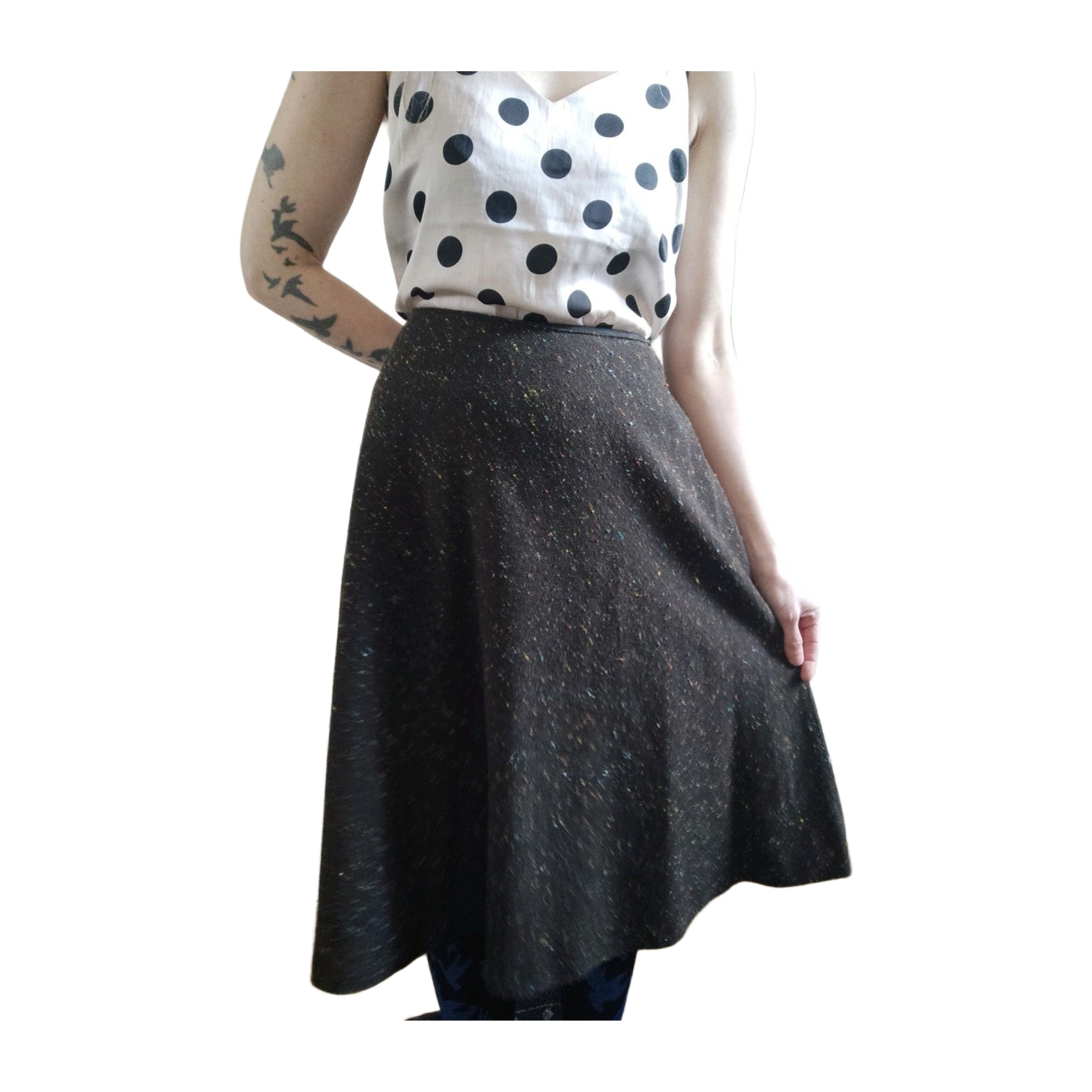 Tumman ruskea #vintage kellohame, jossa villakangas tyyppinen kudottu kangas värikkäillä pisteillä / pilkuin.