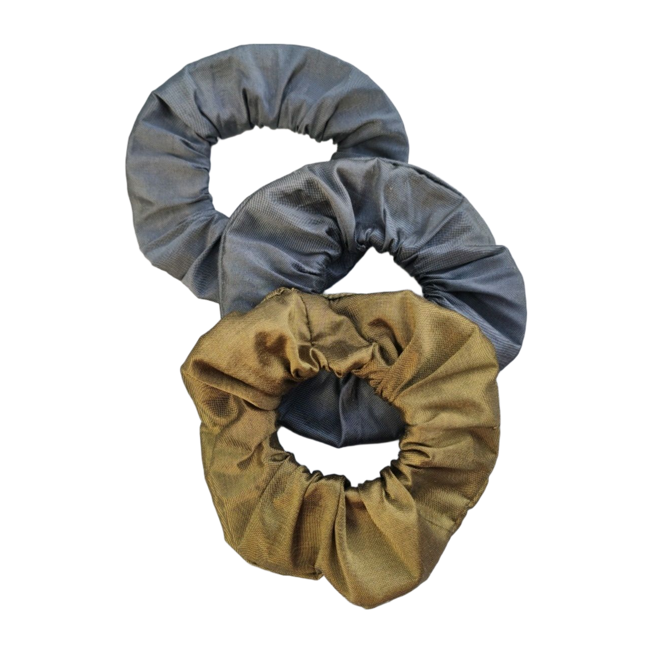 Käsityönä ommeltu oman brändini Vilmurin setti, scrunchie / hiusdonitsi 3 kpl. Uniikkeja.