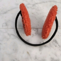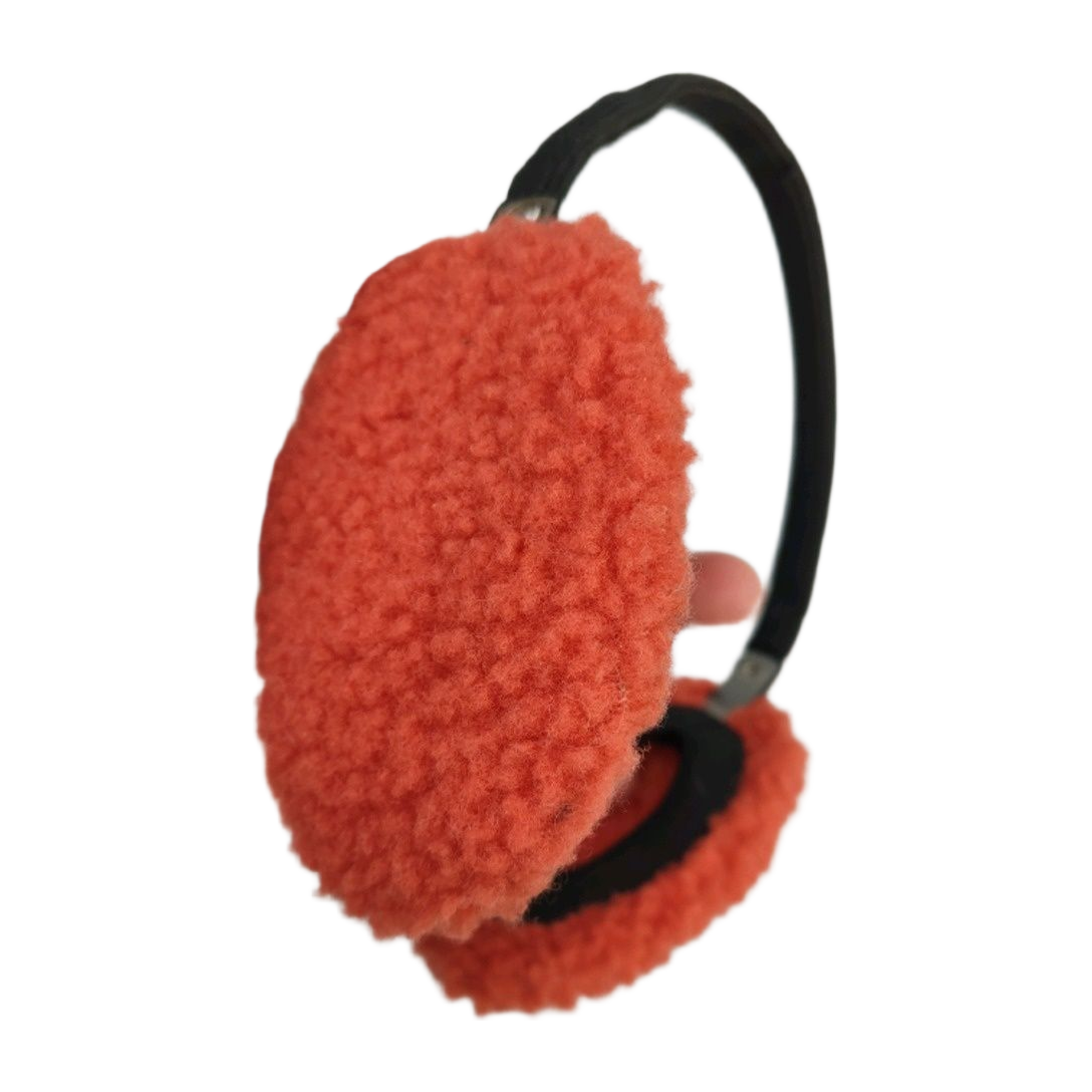 Oranssit teddykarva korvaläpät.