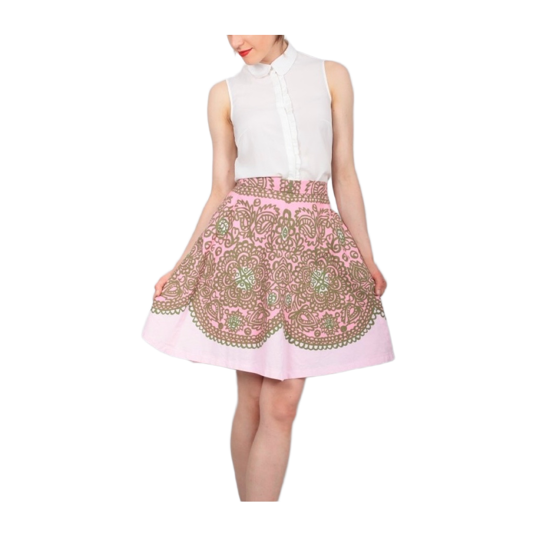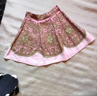 Tosi huolellista ompelutyötä! Avautuu sivusta, vyötärönauhalla nappi, lyhyt vetoketju.