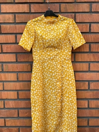Lämpimän keltainen midimekko pikku kukkasin. Merkki Asos.