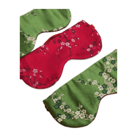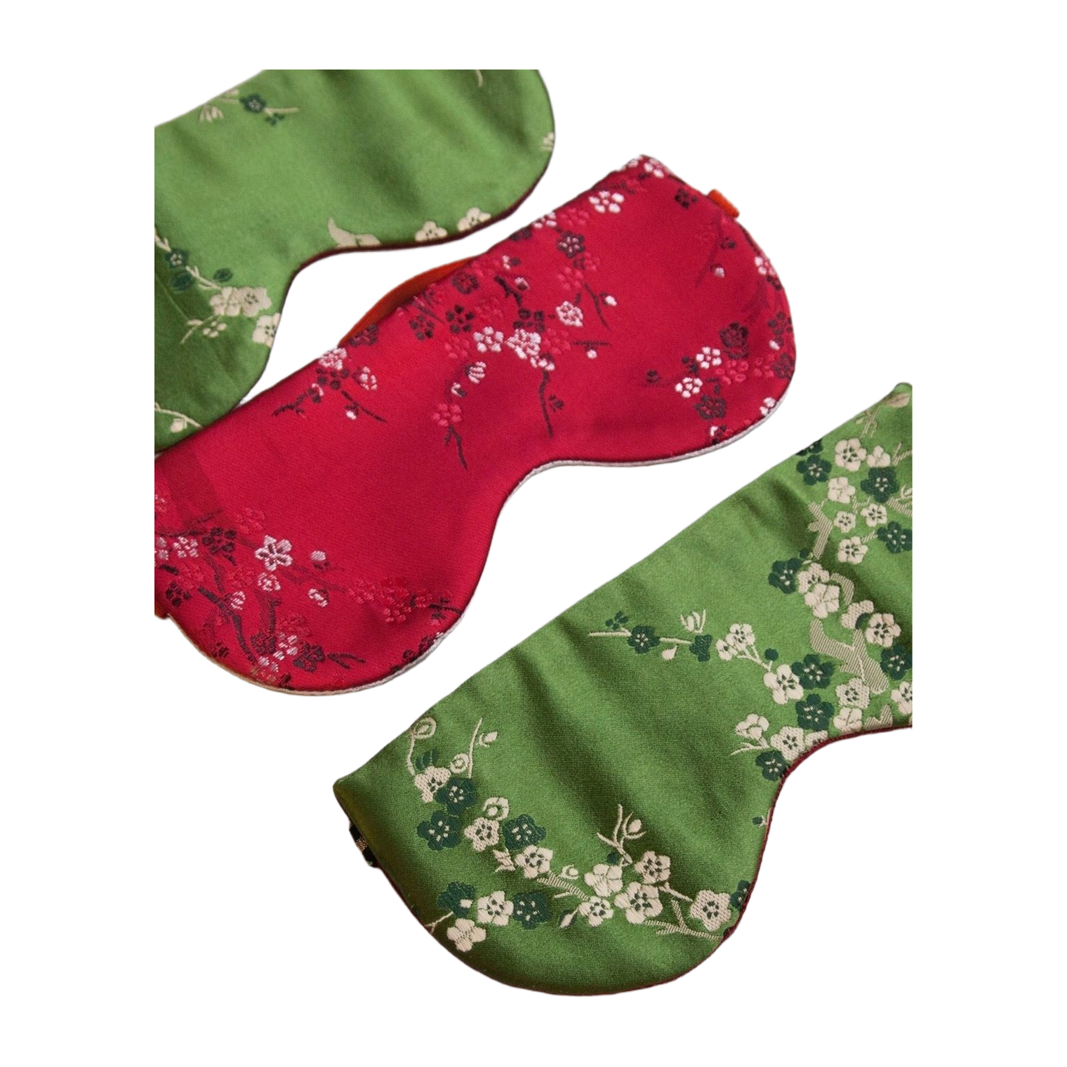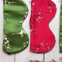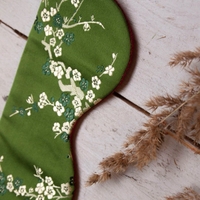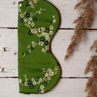 Silmiä vasten oleva vaalean kullan sävyinen puoli aito #silkki, kääntöp. kukkakuvioista vihreää vanhasta hameesta (viskoosia). Kankaiden välissä pehmuste.