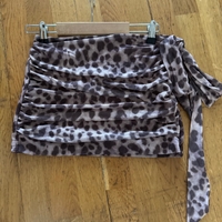 Leikkisä leopardikuvioinen minihame, kietaisumalli solmulla.