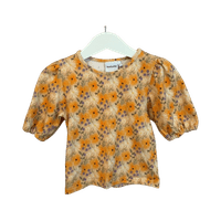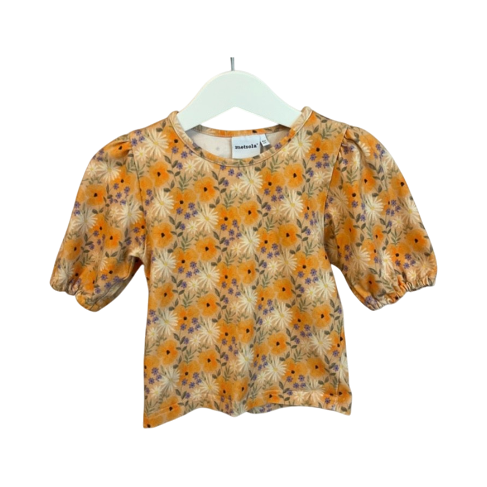 Värikäs kukkapainettu puffy-hihainen t-paita. Koko 86/92