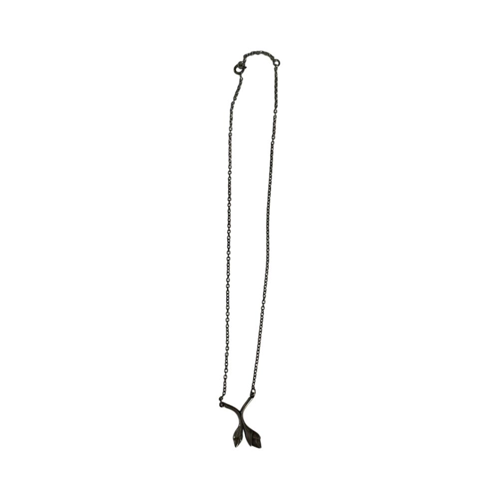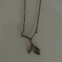 Delicate silver necklace with twin leaf pendant, vintage look.