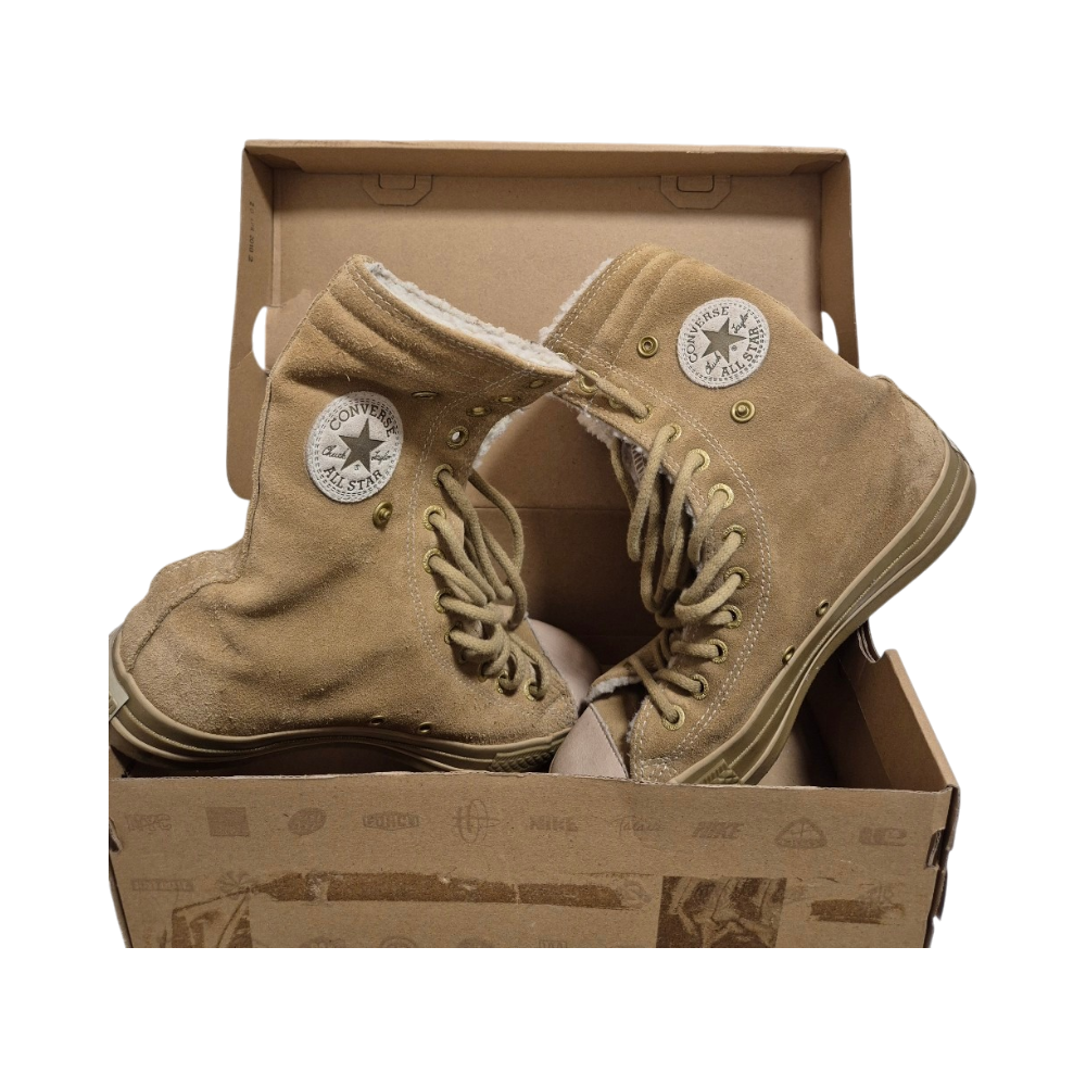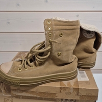 Beigen sävyiset talvitennarit, lämmin tekoturkisvuori, käytetyt, siistit, ehjät.