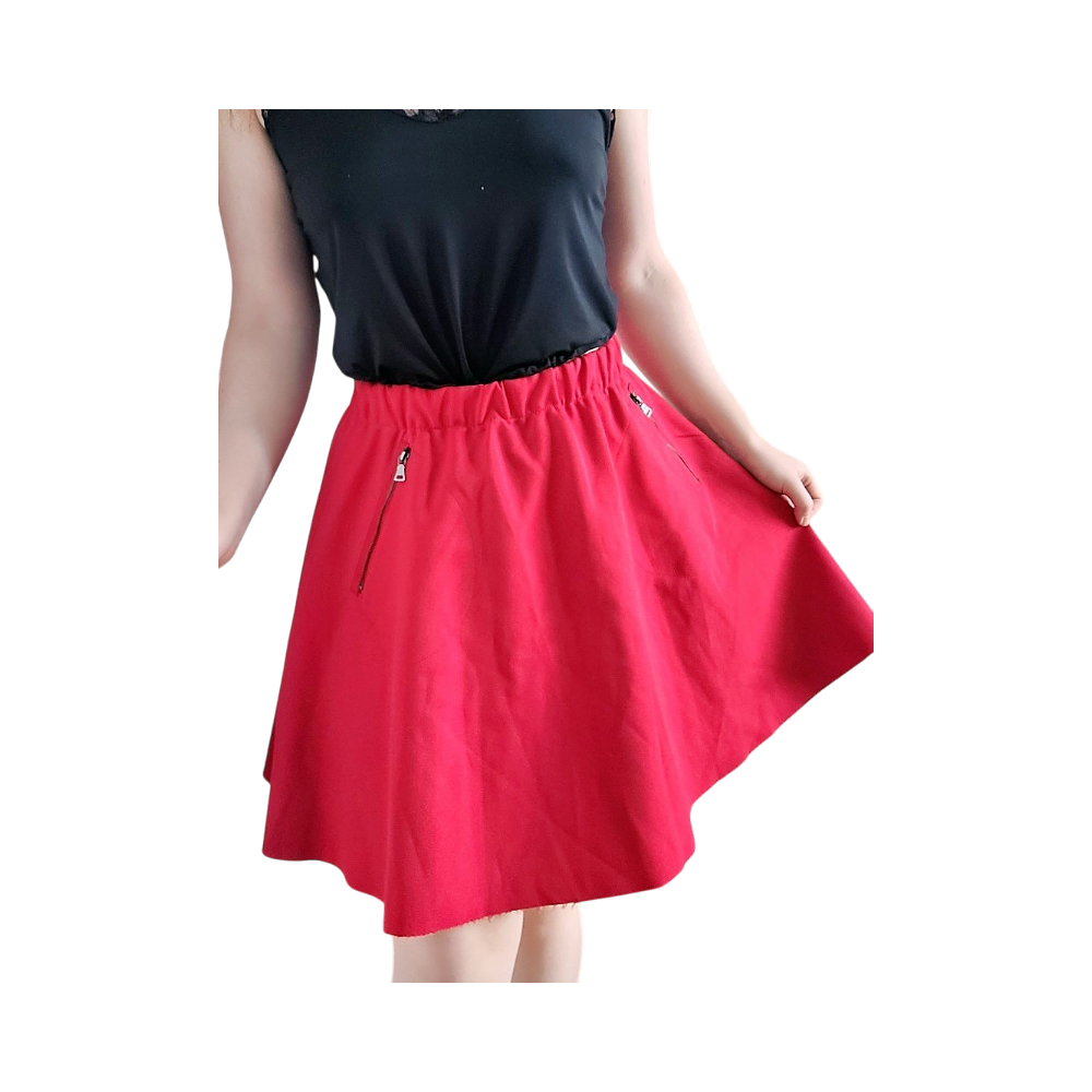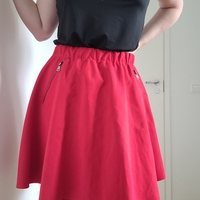 Paksumpaa kangasta, joten ei ainakaan tuulen mukana liehu liikaa ja pysyy söpön mallisena päällä! Vetoketjulliset taskut.