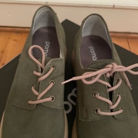 Vihreät mokkanahkaiset nauhakengät, lähes uudenveroiset. Muutaman kerran käytetty. Käyttö näkyy vain pohjien värissä. Koko 37.