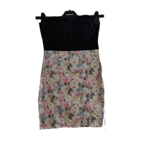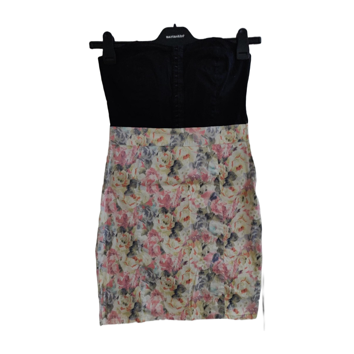 Lähes uudenveroinen ihana olkaimeton siisti mekko. Edessä koristehakaset ja sivussa vetoketju. Koko S. Puuvilla/elastaani.