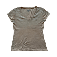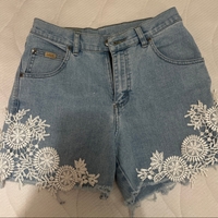 Vaaleat farkkushortsit valkoisella pitsikoristeella, rispahelma.+ paidat