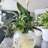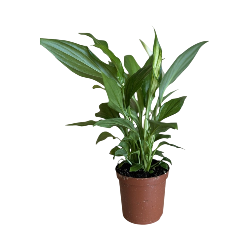 Small peace lily plant in a nursery pot, evergreen and low easy maintenance. The plant grows well indoor and works as an air purifier as recommended by Nasa.