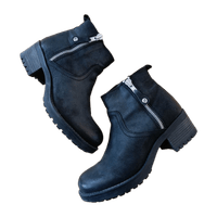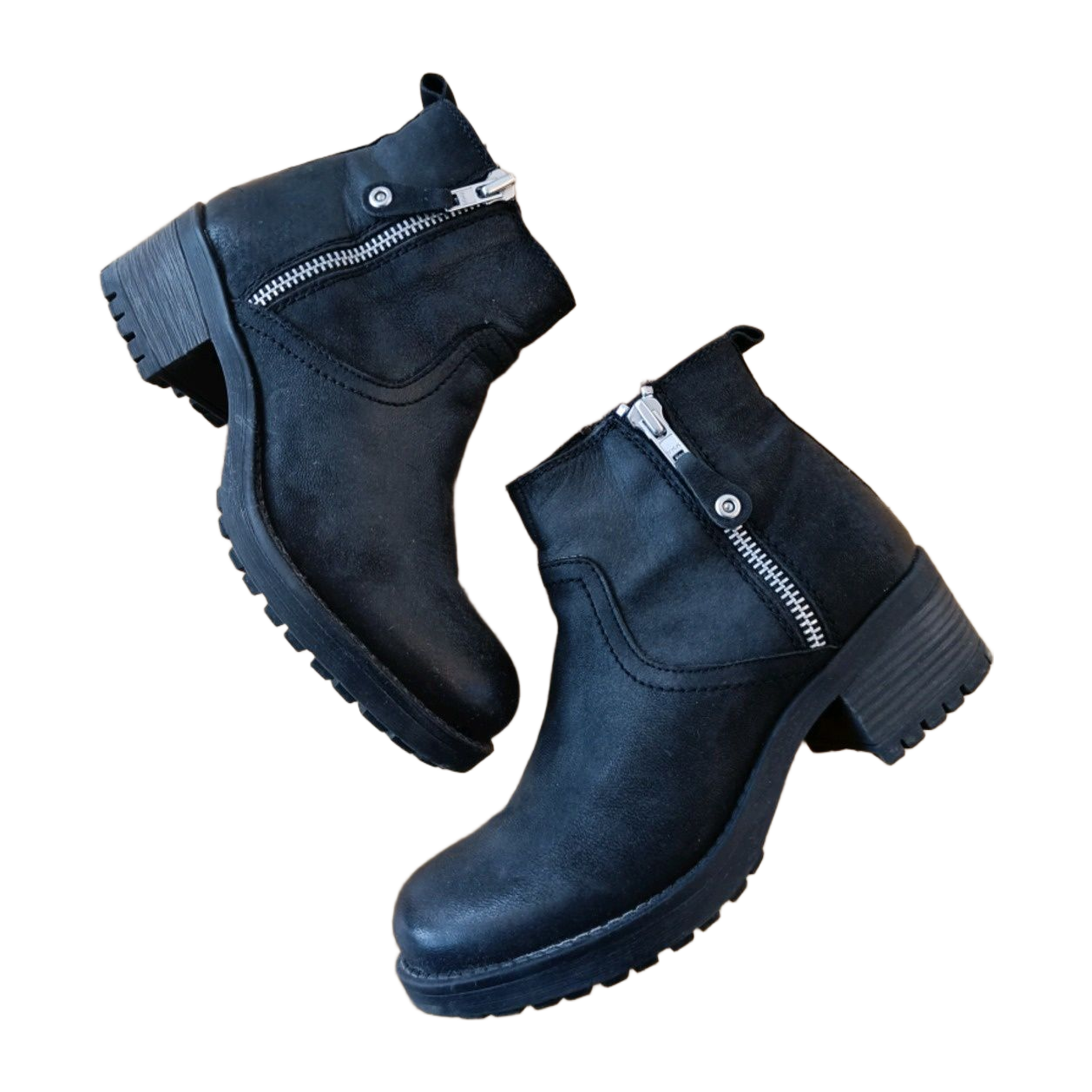 Mustat nahkanilkkurit 🖤 Ulkopuolella koristevetoketju ja sisäpuolella vetskari pukemista helpottamaan.