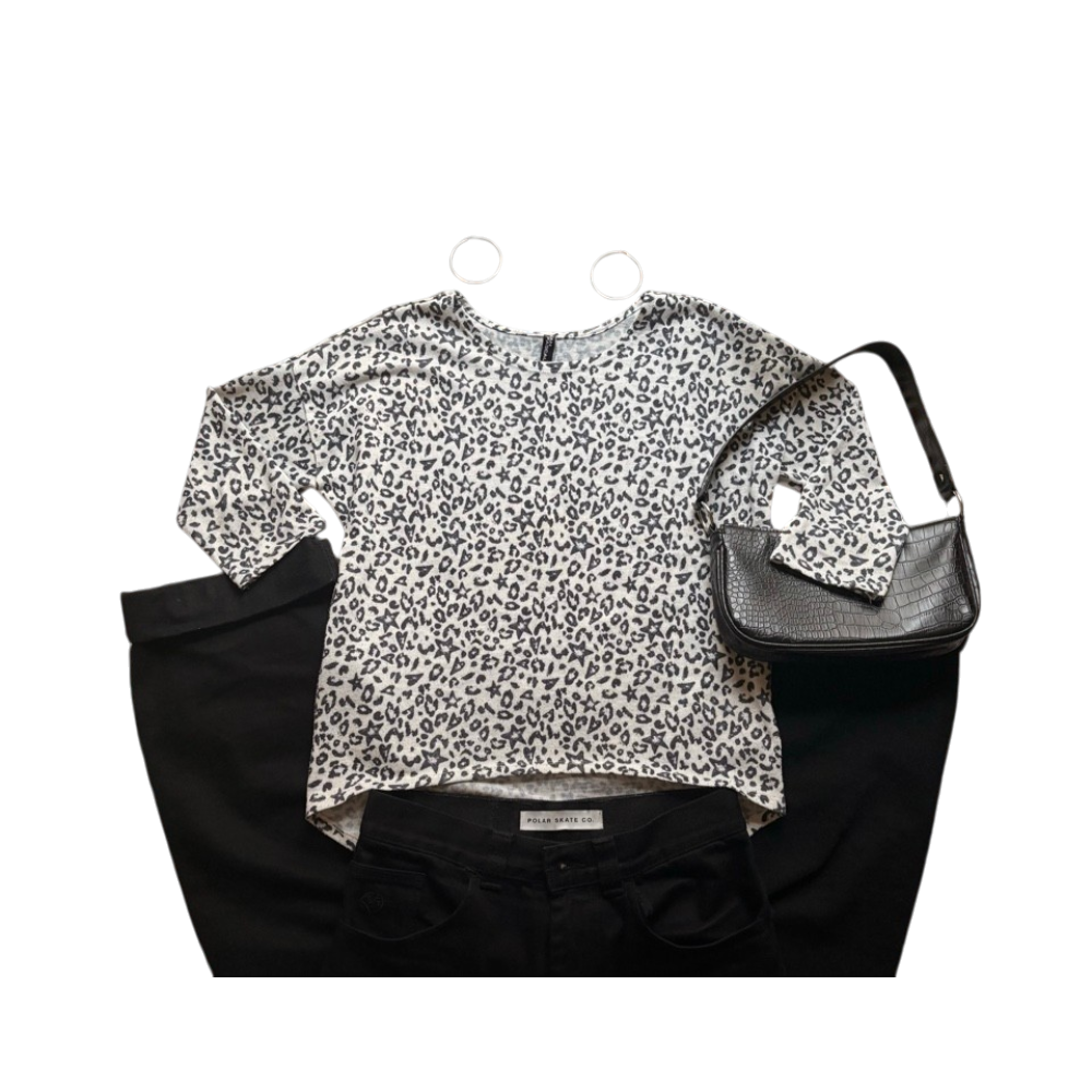 Lightweight long-sleeve leopard print shirt, relaxed fit.