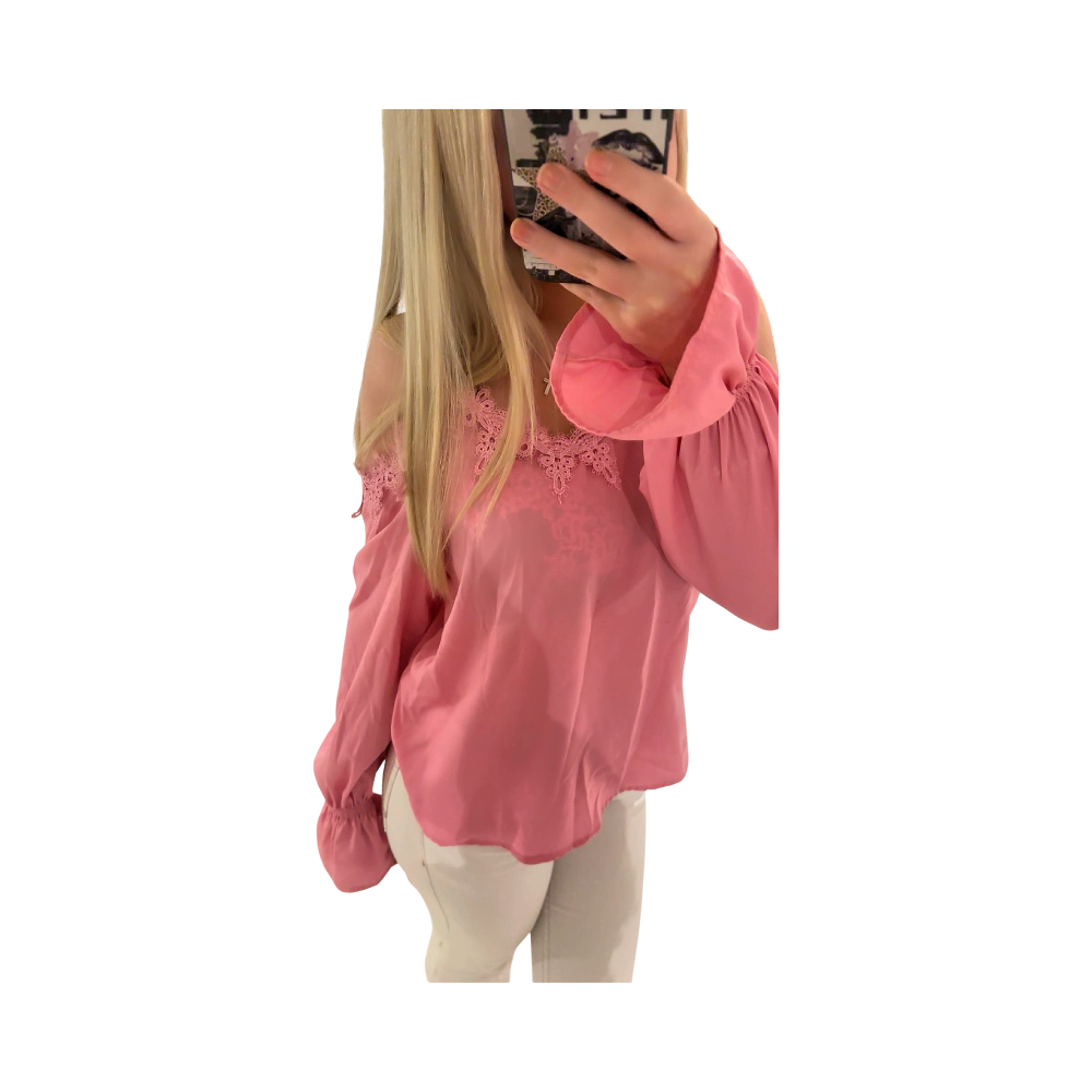 Tyylikäs vaaleanpunainen pitsipaita, hyvässä kunnossa.