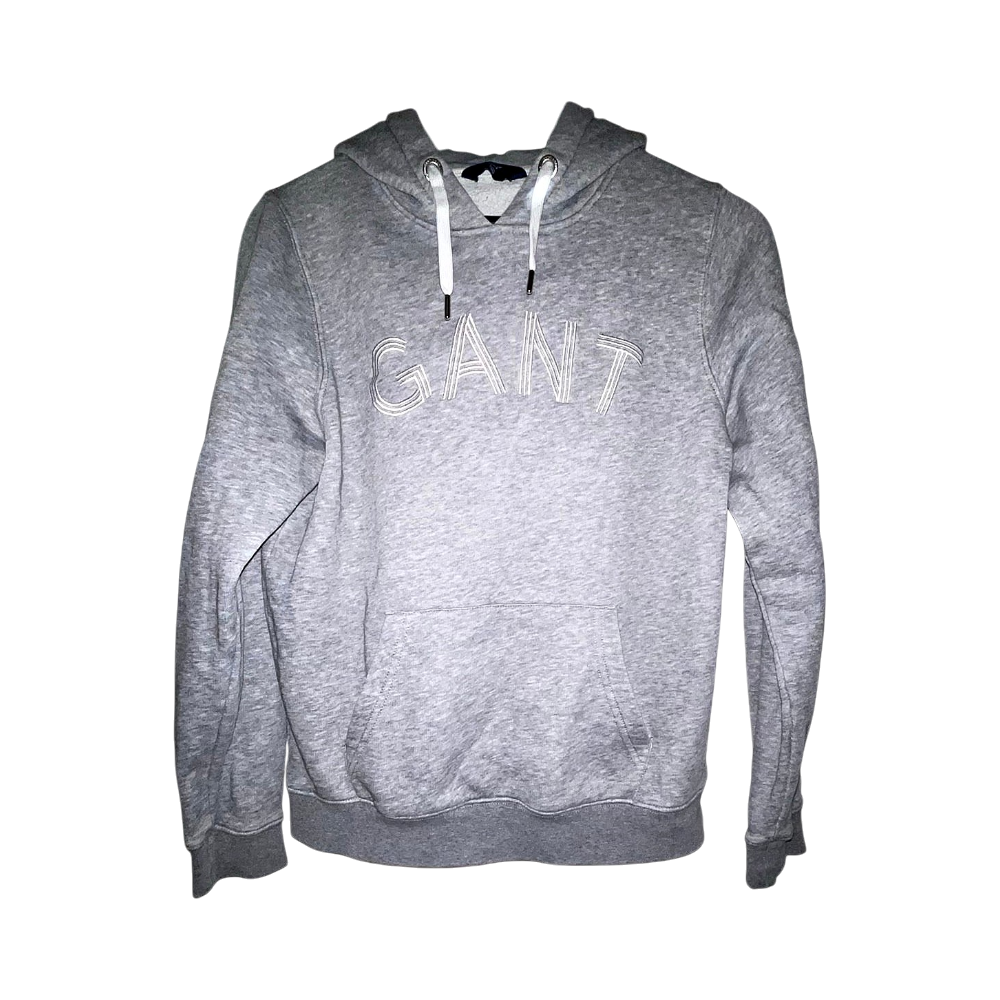 Klassinen harmaa huppari, pieni reikä etutaskun sivussa, muuten hyvässä kunnossa.