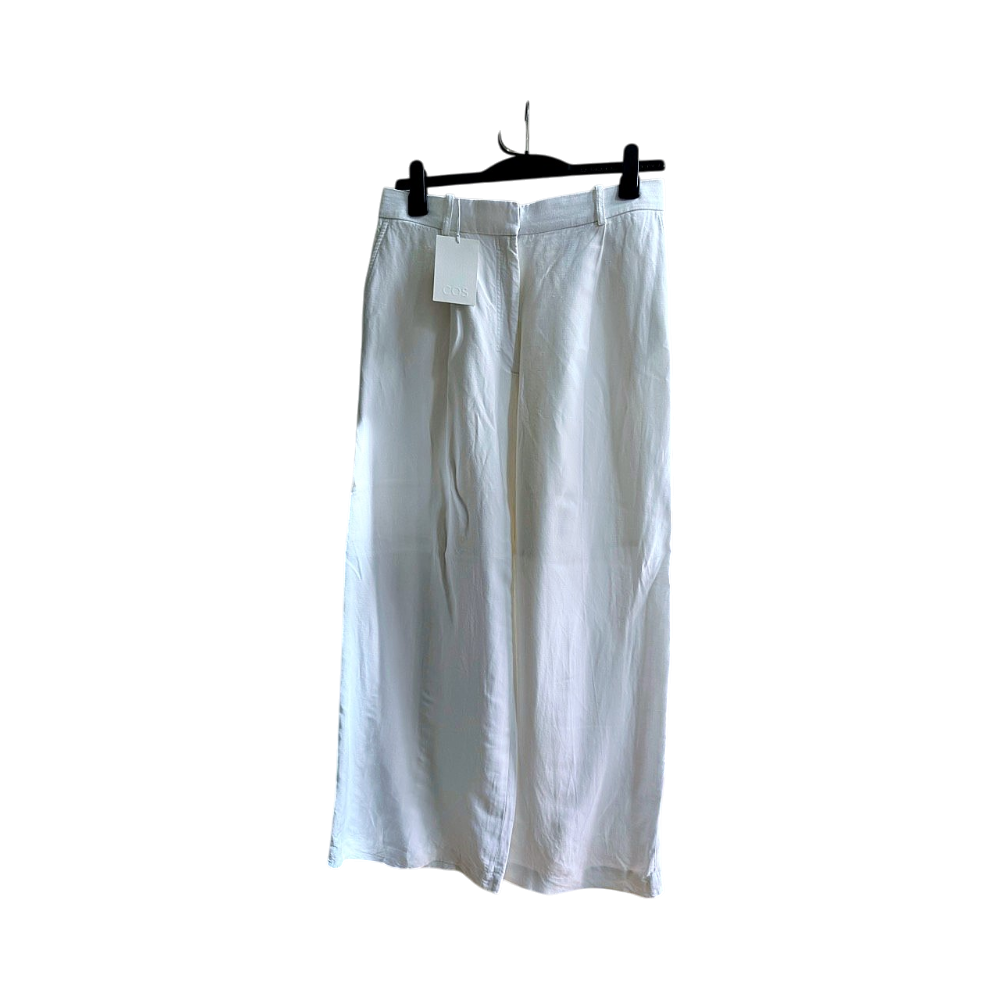 COS naisten valkoiset leveälahkeiset housut, valmistettu pellavasekoitteesta. Koko 40. Housut ovat täysin uudet ja käyttämättömät, vielä laput kiinni. Ovh 115e.