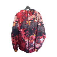 Kuviollinen lumilautaulu/ kuoritakki, tuulen- ja vedenpitävä, hupullinen. Vetoketjutaskut edessä, pituus olka-helma 78 cm ja hihan pituus 67 cm