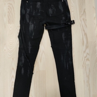 Koristenyöritys ja koristeremmi, harmaat printtiyksityiskohdat. Kapea istuvuus, korkeahko vyötärö. Syvät taskut edessä, pienet takana. Vain muutaman kerran käytetty, erittäin hyväkuntoiset. Vyötärö liian korkea omaan makuun. Kokomerkintä S ja vastaa hyvin kokoaan.