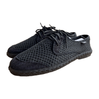 The Sisto rejilla is apt for the beach or the town with it’s easy breathing mesh cotton uppers and traditionally vulcanized, natural rubber soles. Pair by pair, hand-crafted in La Rioja, Spain. Size 41