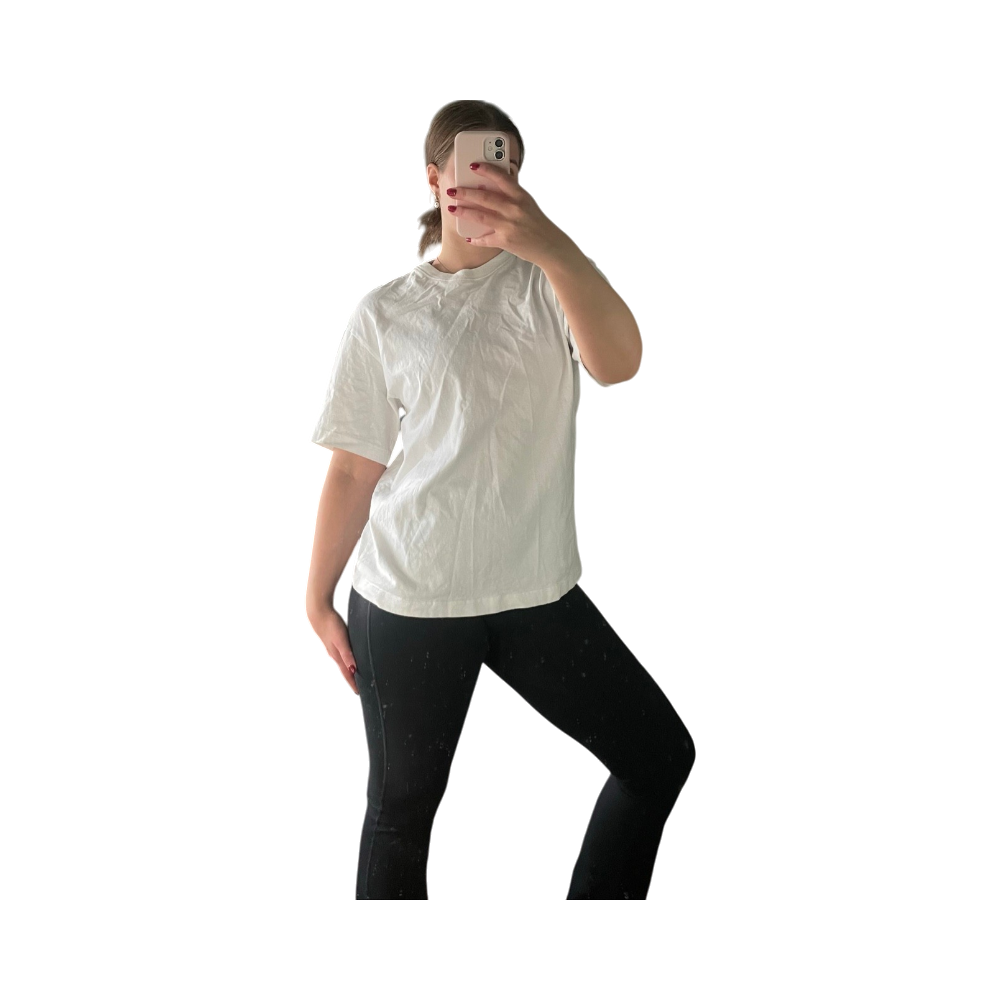 Rentoleikkainen, valkoinen t-paita, koko M.