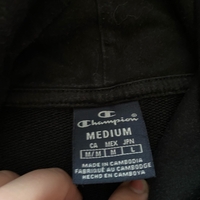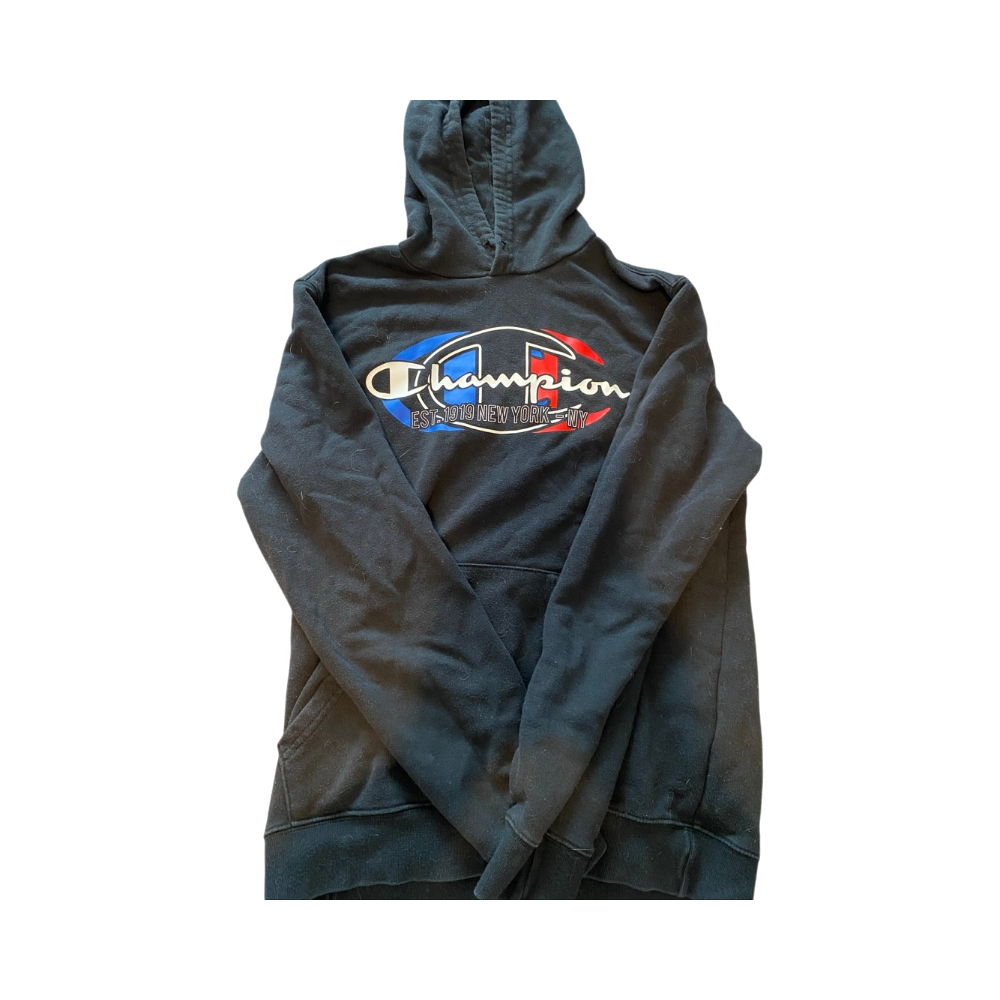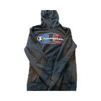 Mustat Champion-huppari, edessä iso logo, vetoketutonta mallia.