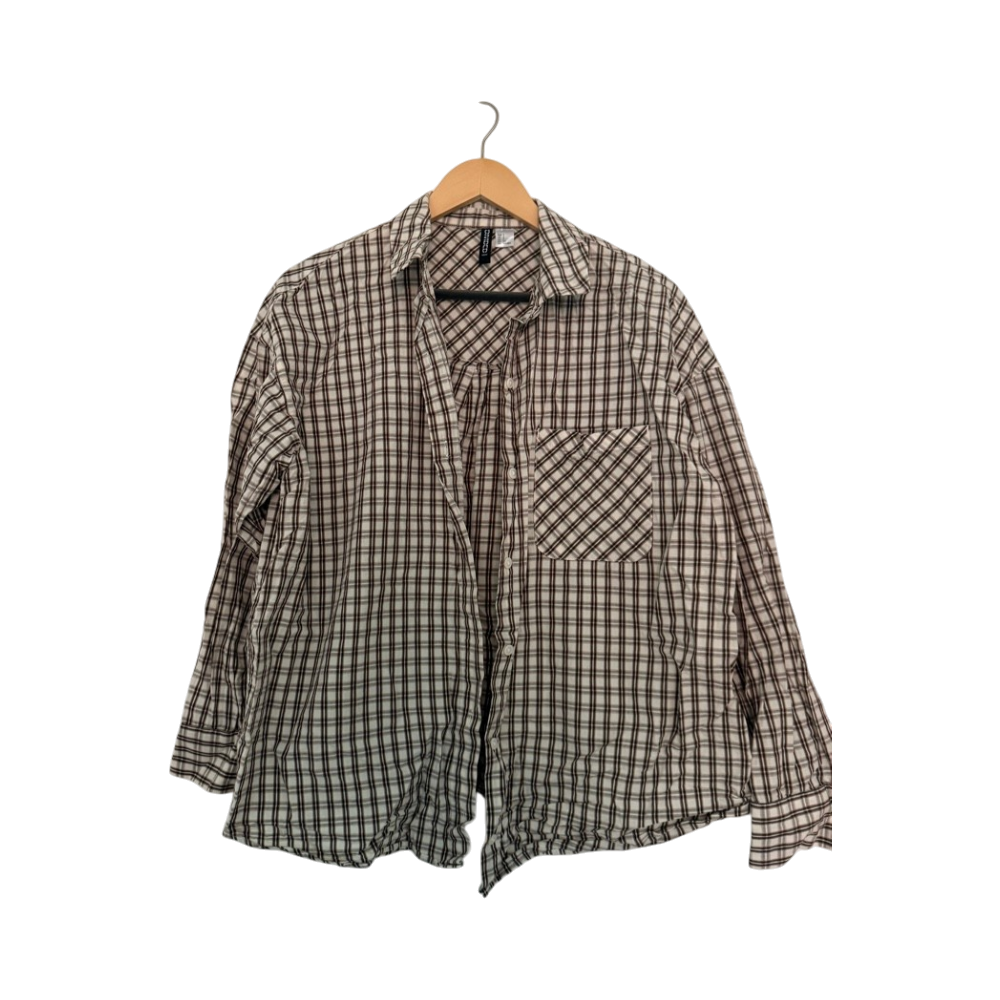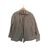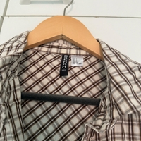 Beige-ruskea ruudullinen pitkähihainen kauluspaita, kokoa S.