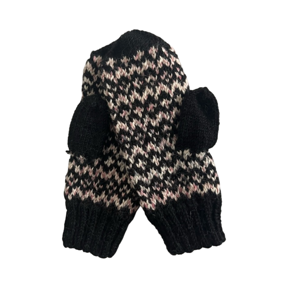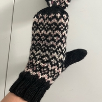 Käsinneulotut lapaset. Sopii S-pieneen M-kokoiseen käteen. Kahdella värillä tehty kuviointi tekee lapasista paksummat ja lämpimät!