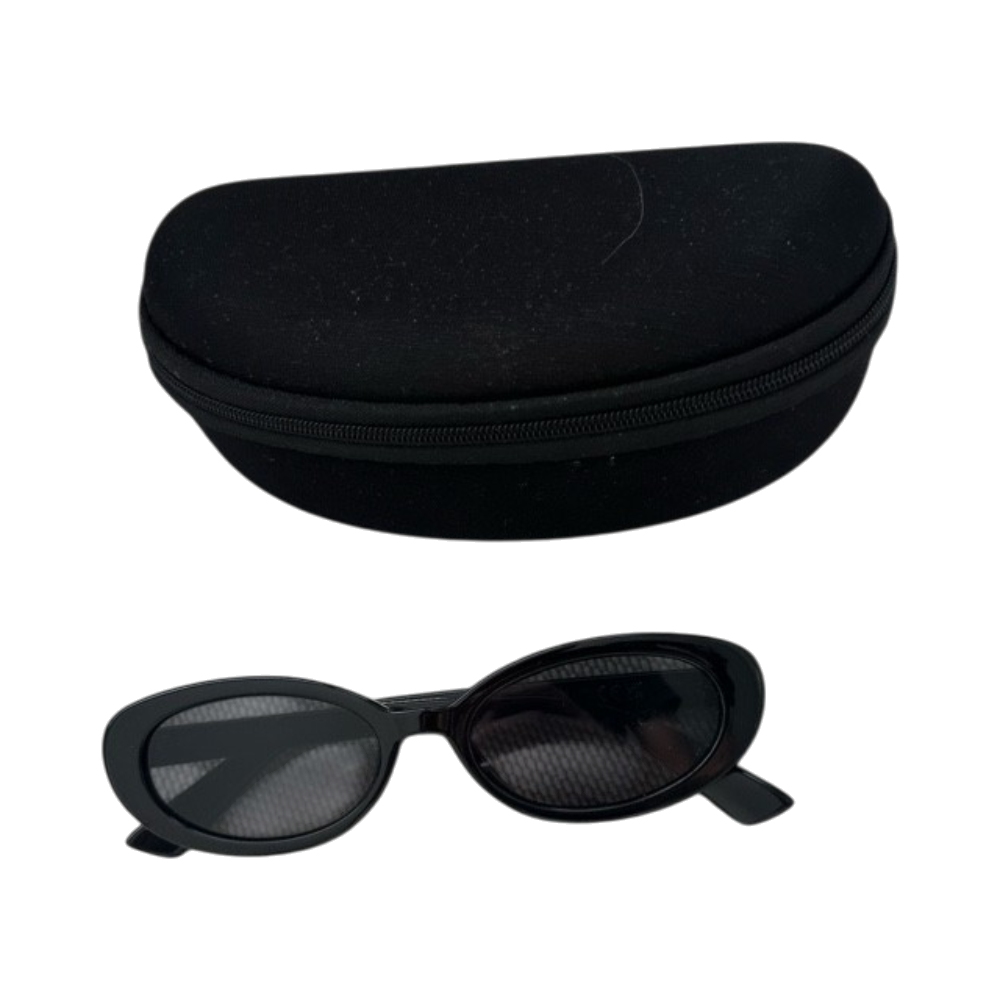 Klassiset mustat aurinkolasit, mukana säilytyskotelo.
