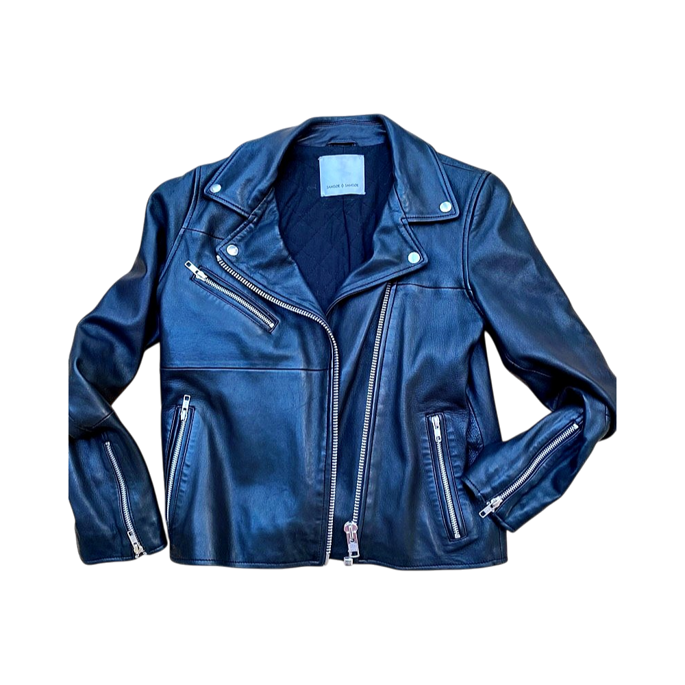 Samsoe & Samsoe biker-nahkatakki (S, 100 % lampaan nahkaa)