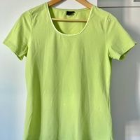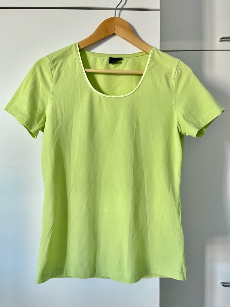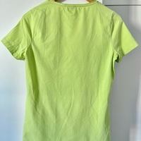 Limenvihreä puuvilla t-paita koossa M ja menee hyvin myös S. Satiini reunus kaula-aukossa. Kunnossa ei moitteita