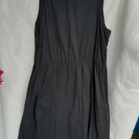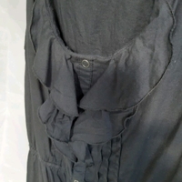 Musta hihaton puuvillamekko puuvillavuorella, napit alas asti, edessä röyhelöä, koko XL.