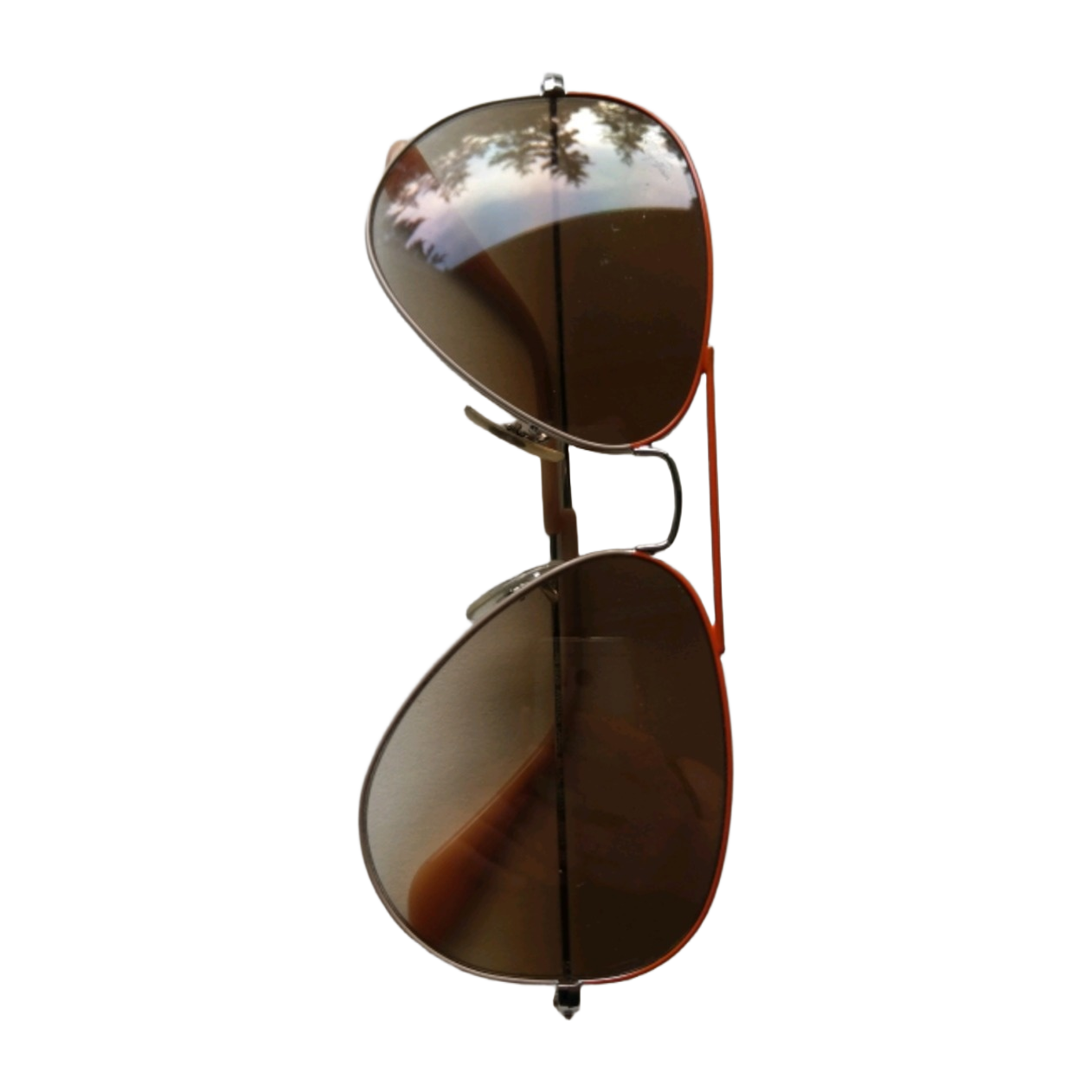 Duo tone orange frame large aviator RayBan-aurinkolasit (RB3025 071/51 2N) koteloineen.