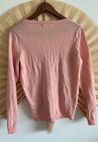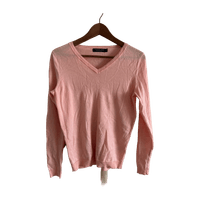 Vaaleanpunainen v-kaula neulepaita, pitkähiha, klassinen malli. 100% villaa, ei kutistumisia tai nukkaantumista. Vain muutaman kerran käytetty