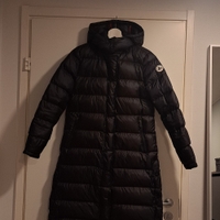 Musta polven alle tuleva untuvatakki, jossa sivuissa avattavat halkiot kävelyä helpottamaan. Vetoketju- ja magneettinappikiinnitys. Veden- ja tuulenpitävä. Aivan ihanan muhkea, laadukas ja lämmin takki, itselle valitettavasti vähän pieni ja siksi lähes käyttämätön. Mukana alkuperäinen säilytys- ja kuljetuskassi. Hartiasaumasta hartiasaumaan 43cm, pituus hartiasaumasta helmaan 106cm.