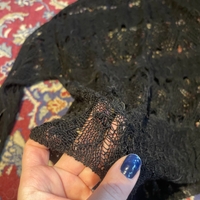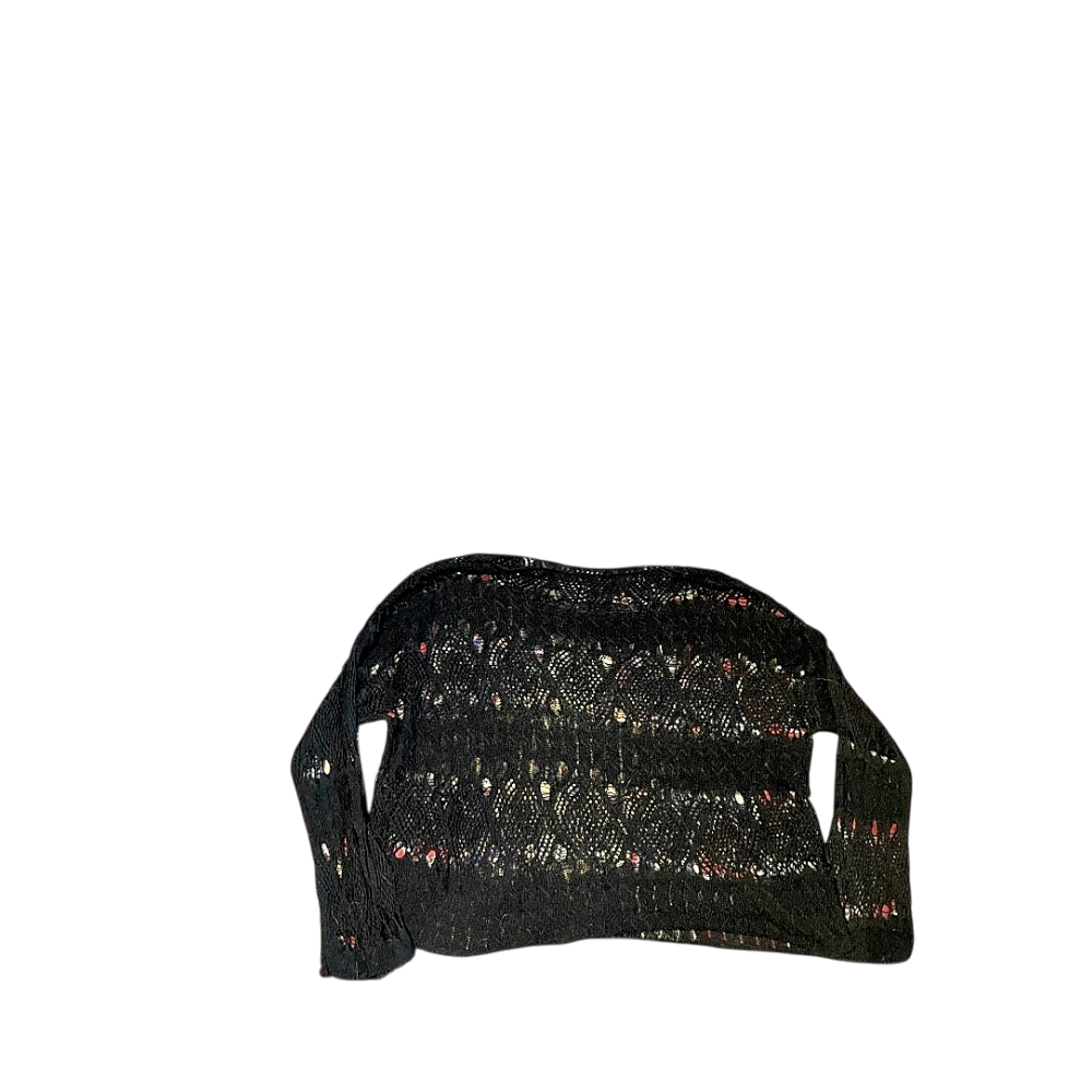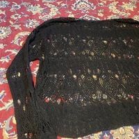 Musta crochet kevyt neule pitkähihainen🖤 sopii hyvin esim jonkun pitkähihaisen paidan kanssa, parista kohtaa neulos hieman löystynyt, ei huomaa käytössä sillä neulos on pitsimäinen #y2k #grunge #alternative #avantgarde #opium #coquette #japanstyle