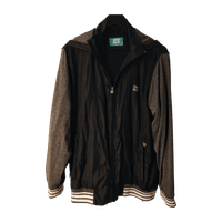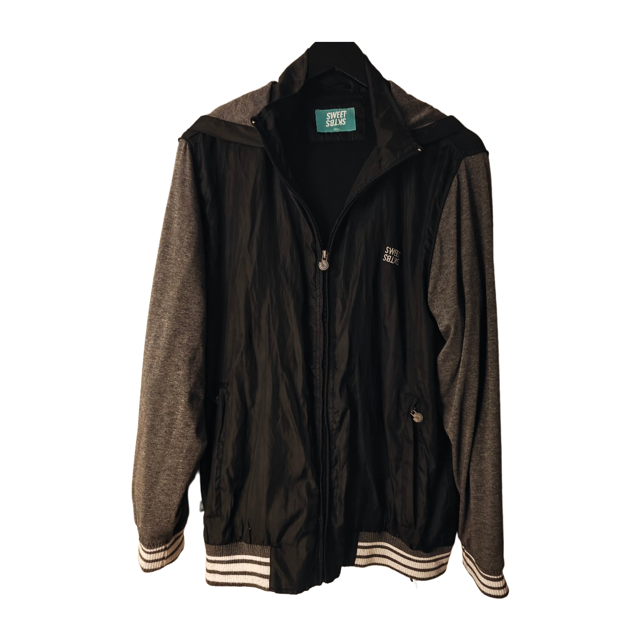 Mustaharmaa kevyt Sweet SKTBS -takki hupulla ja vetoketjulla.