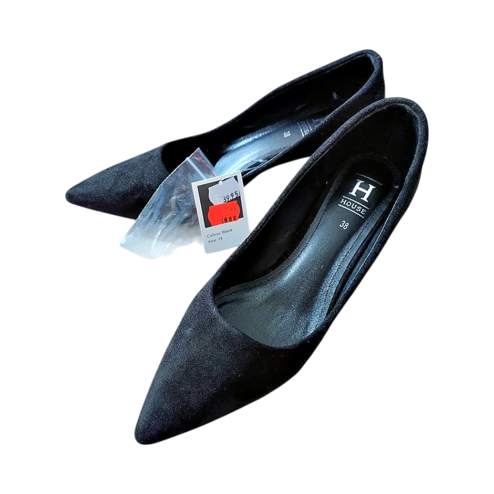 Uudet mustat teräväkärkiset avokkaat, koko 38, vastaa kokoa 37. Korko noin 4 cm.