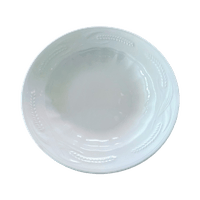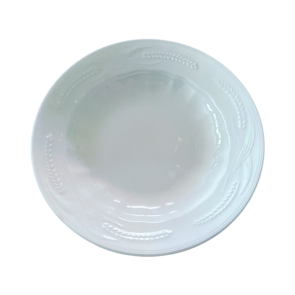 Valkoinen keraaminen syvälautanen viljakuvioin, hyväkuntoinen.