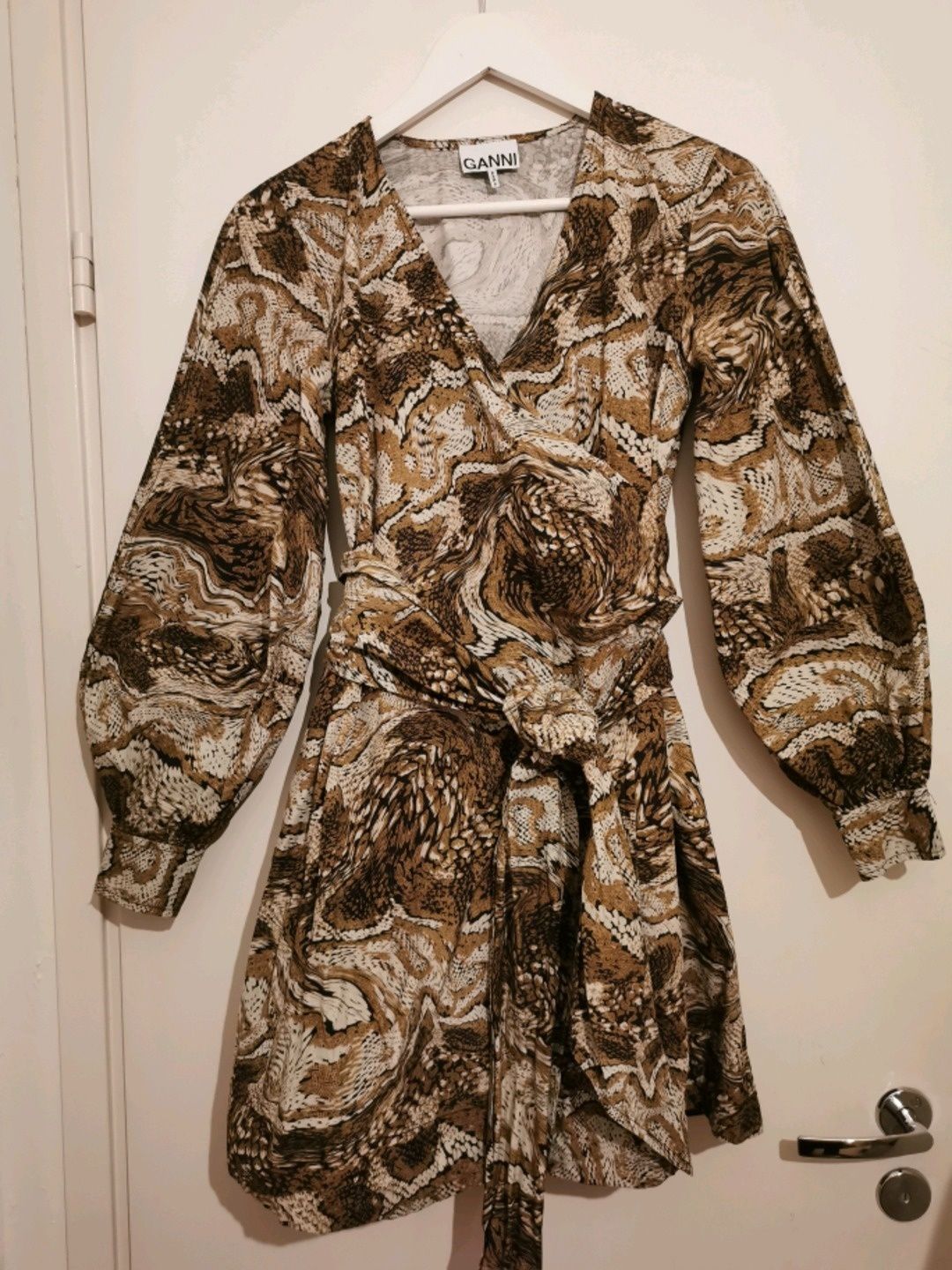 Ihana Gannin käärmekuosinen kietaisumekko! Materiaali jämäkkää ja kauniisti istuvaa puuvillaa.
