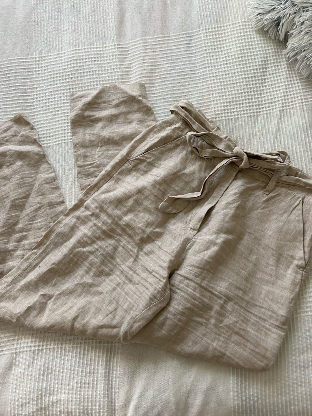 Beiget pellavahousut. Käytetty, mutta hyvässä kunnossa.