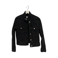 Musta tyköistuva farkkutakki. Materiaali hieman joustavaa.