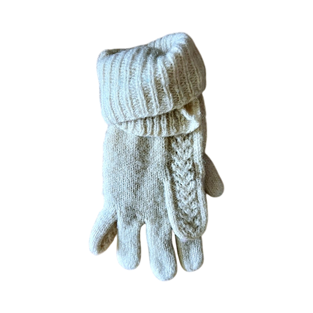 beige neulotut villahansikkaat