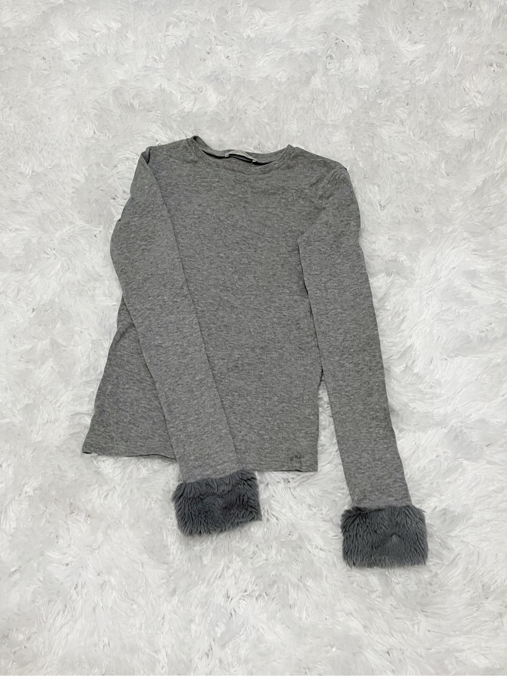 Zara vaaleanharmaa joustava pitkähihainen tekoturkishihoilla. Koko S. Ei vikaa, ~uutta vastaava.