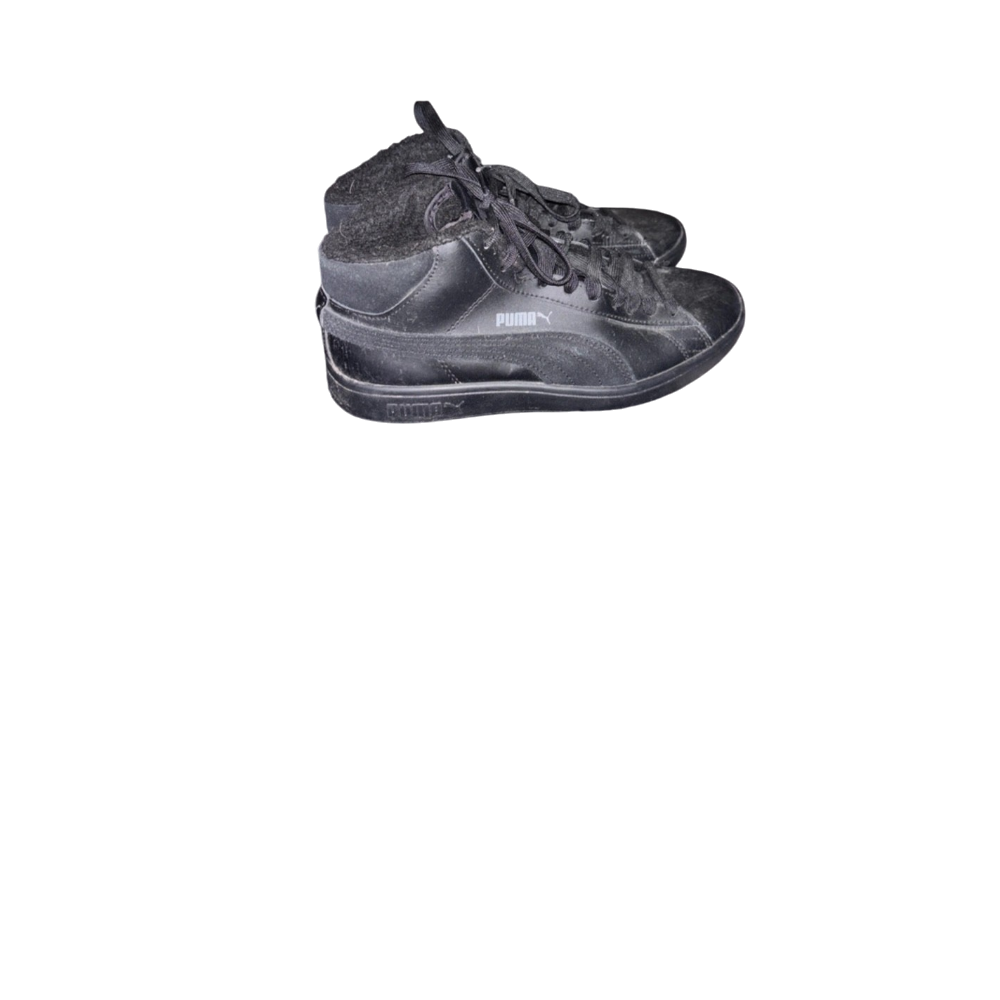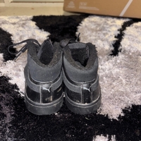 Mustat keinonahkaiset tennarit, vuorelliset, käytetyt.