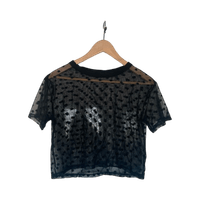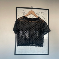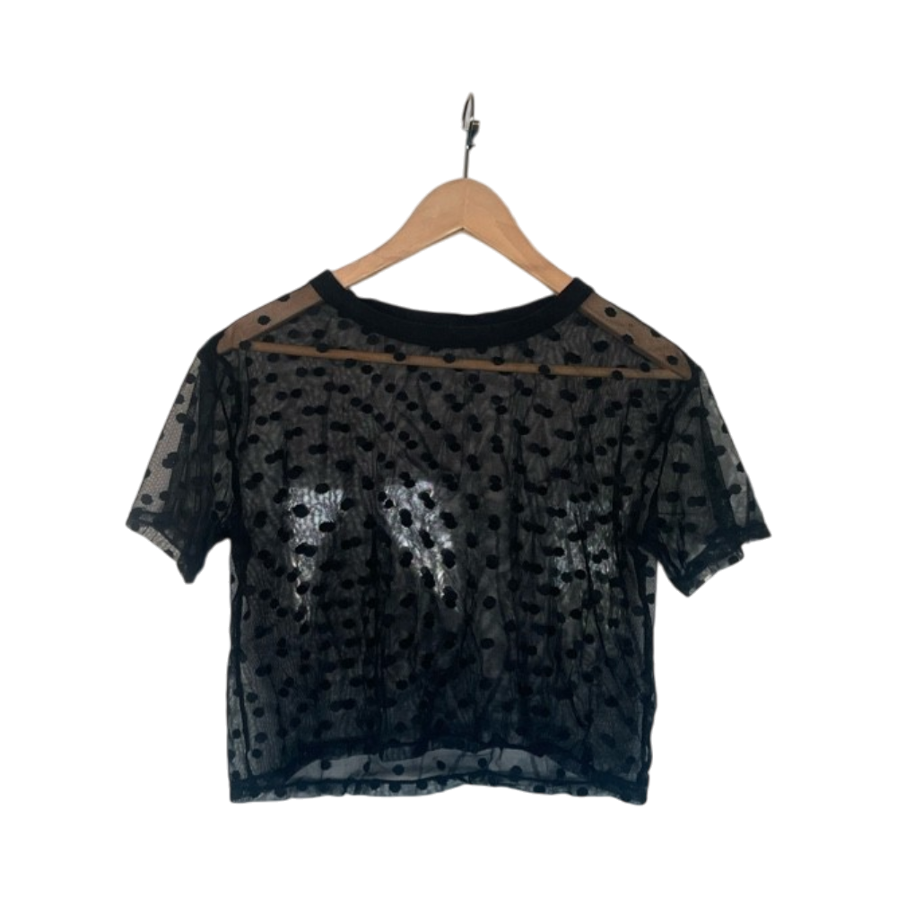 Lyhyt läpikuultava pilkullinen mesh-toppi. 🖤